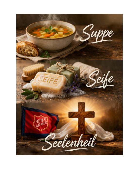 Unter diesem Motto entsteht im 19. Jahrhundert die Heilsarmee als eine ganz besondere Freikirche. Sie geht aktiv gegen soziale Missstände vor und lebt die Kraft des Evangeliums in Wort und Tat. Gründer der Bewegung ist der Engländer Wiliam Booth (*1829-1912)