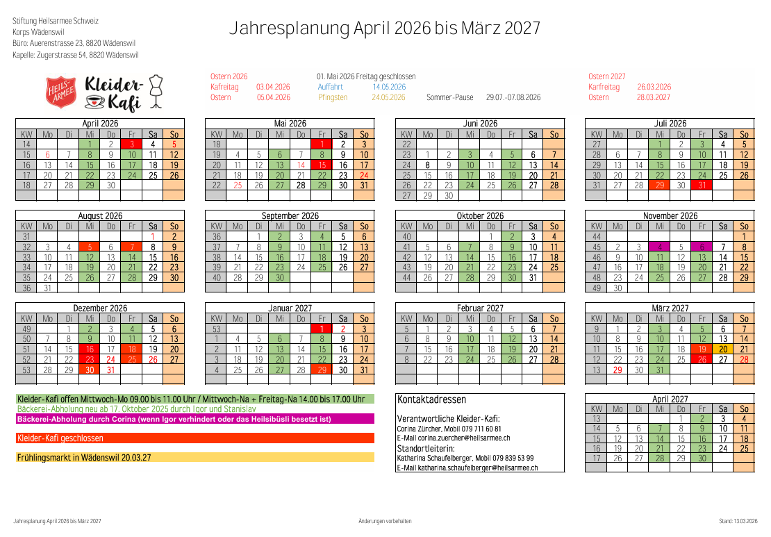 An diesen Tagen bleibt das Kleider-Kafi geschlossen!!